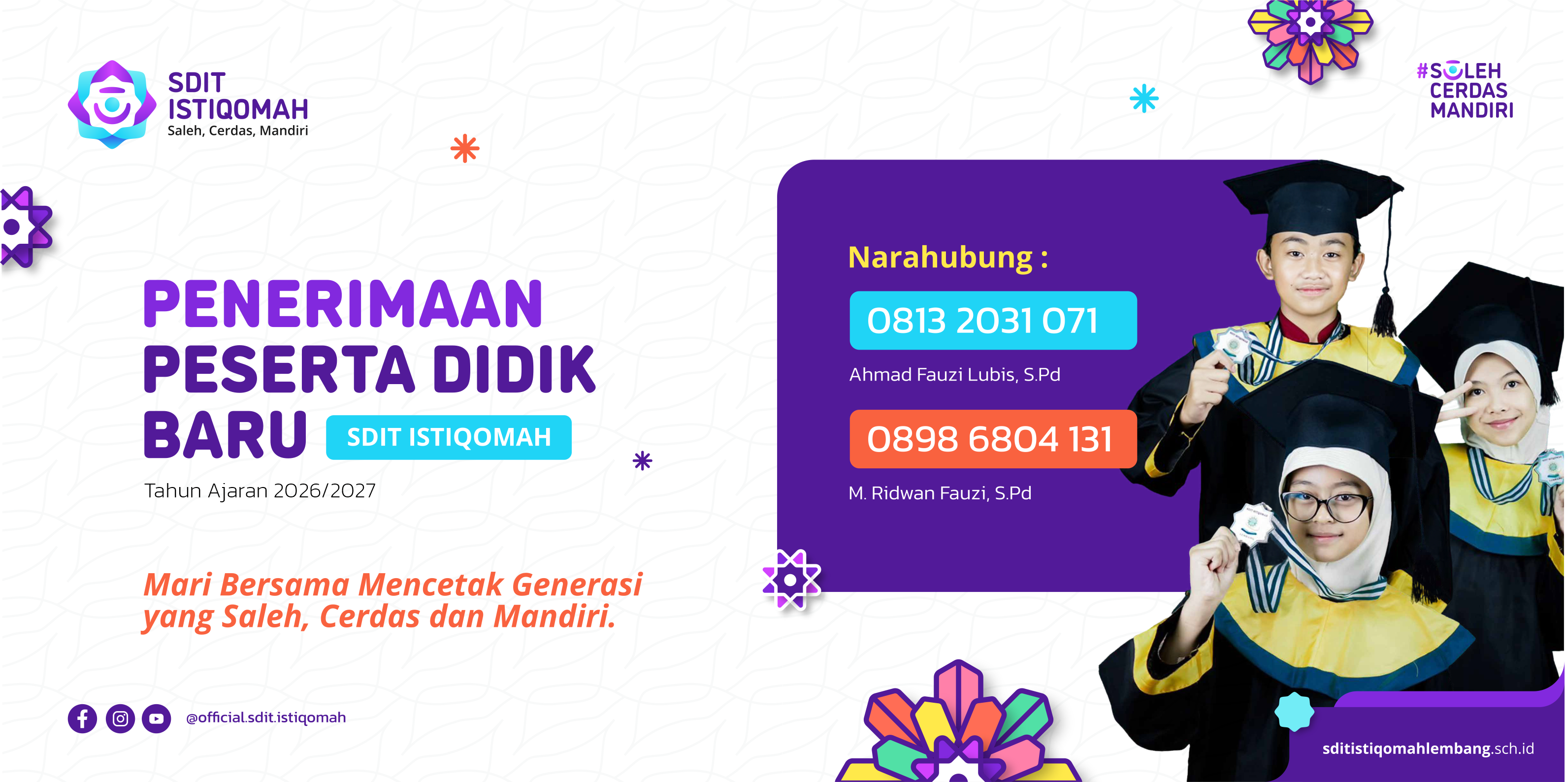 Kami ucapkan terima kasih kepada para orangtua dari berbagai RA/TK yang telah berkunjung ke SDIT ISTIQOMAH untuk mendaftarkan putra-putri terbaiknya. Silahkan simak informasi PPDB di SDIT ISTIQOMAH untuk Tahun Ajaran 2026/2027 berikut ini: